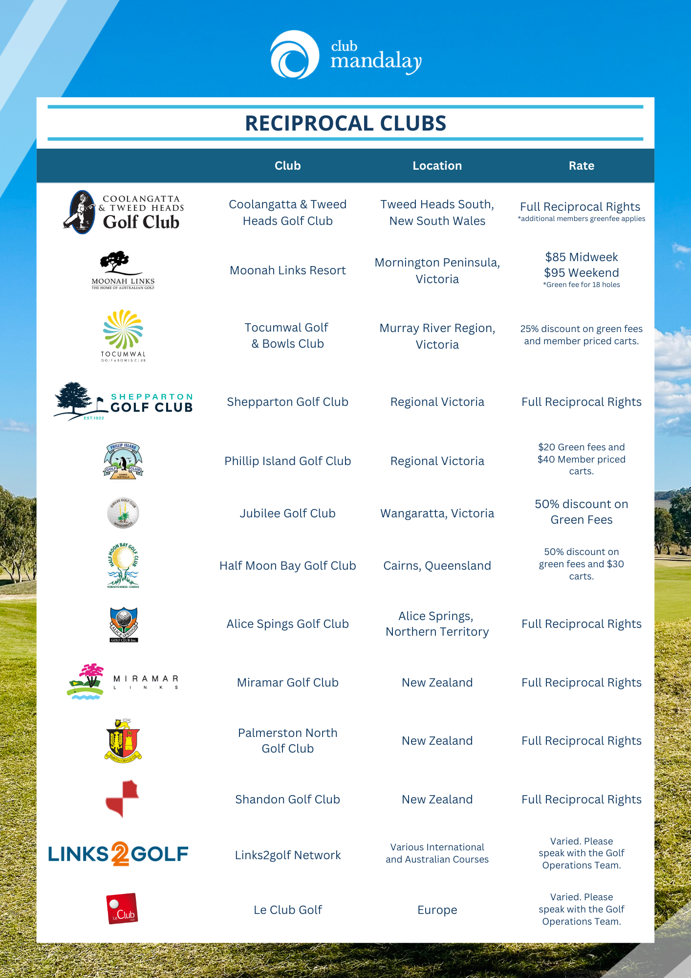 Please talk to the Pro-Shop to find out more and receive a Letter of Introduction.